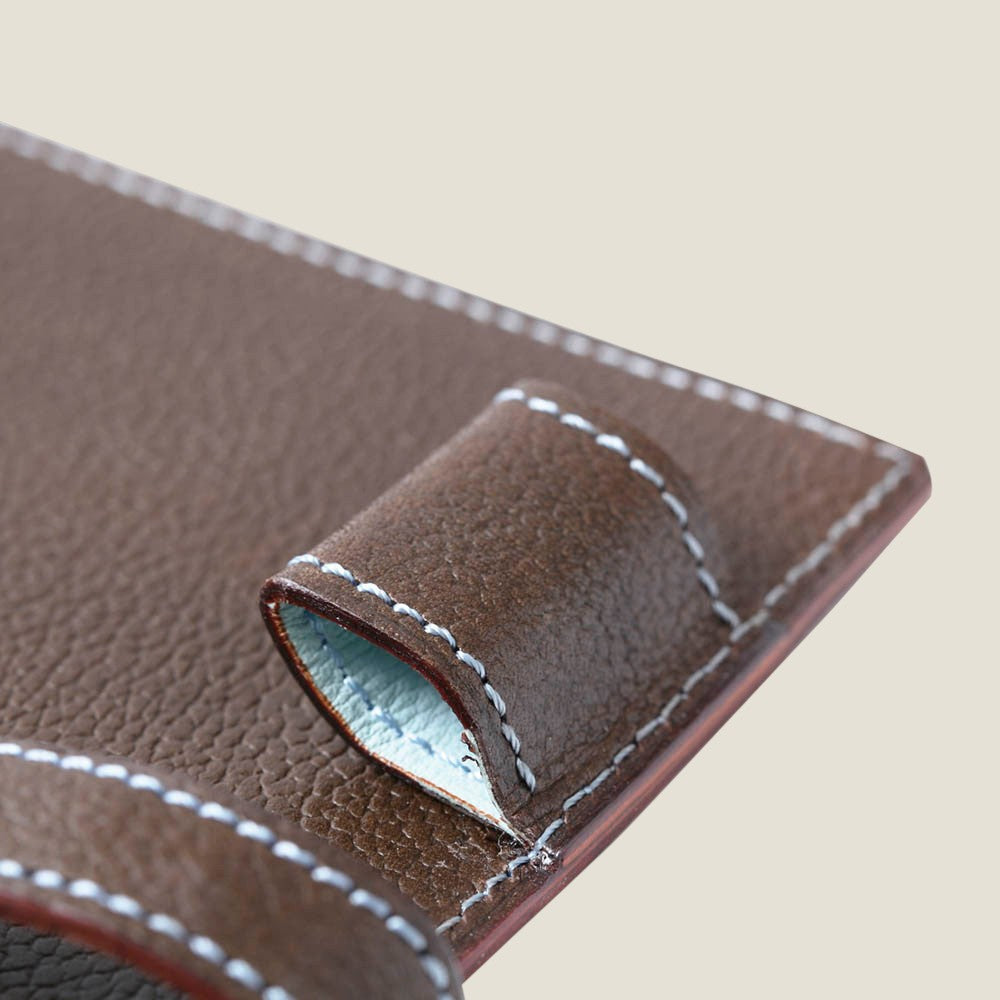 一般的な手帳カバーサイズよりゆとりをもたせているのは、手帳リフィルとノートをともに持ち運べるようにするため。