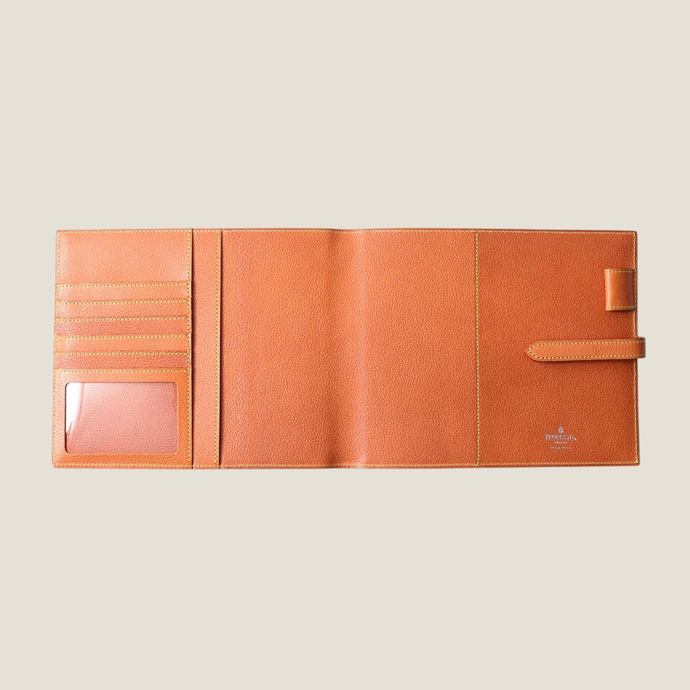 一般的な手帳カバーサイズよりゆとりをもたせているのは、手帳リフィルとノートをともに持ち運べるようにするため。