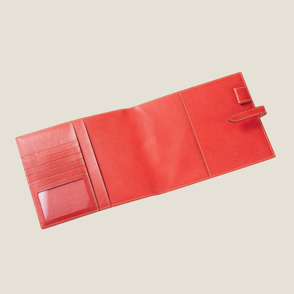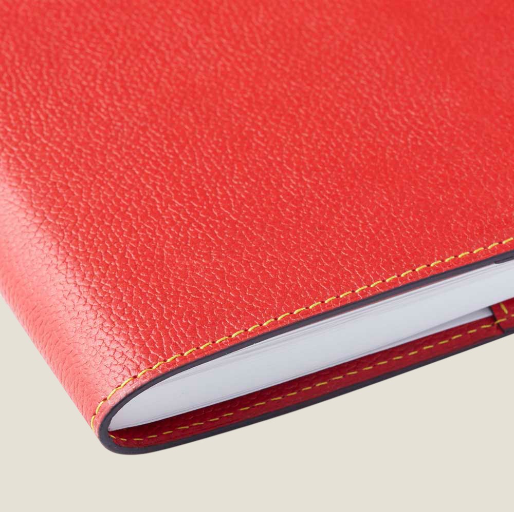 一般的な手帳カバーサイズよりゆとりをもたせているのは、手帳リフィルとノートをともに持ち運べるようにするため。