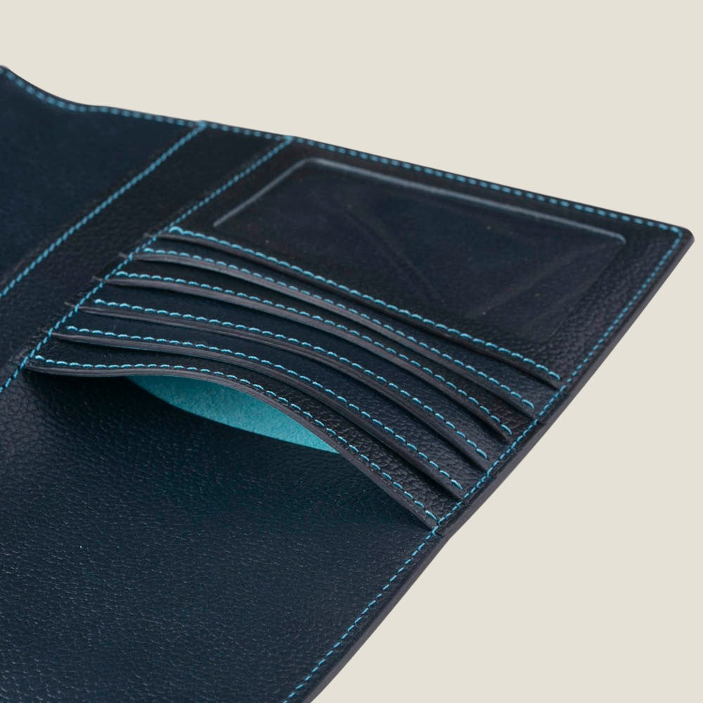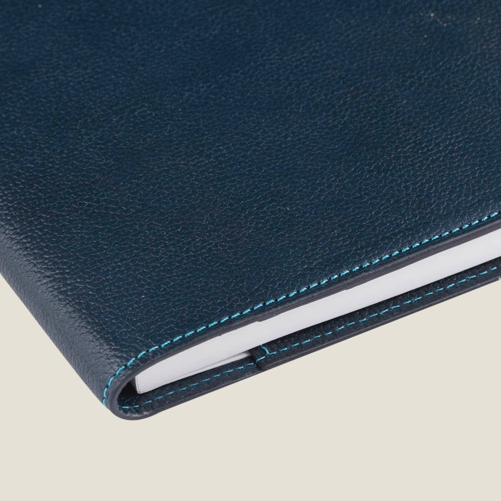 一般的な手帳カバーサイズよりゆとりをもたせているのは、手帳リフィルとノートをともに持ち運べるようにするため。