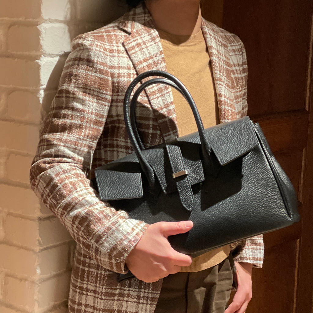 パソコンが入りつつも、アフターワークのディナータイムなどに、“ いかにもビジネスバッグ ” に映らないよう、“ 品あるサイズ感 ” に仕上げ、持つ人のスタイルを美しく魅せるよう、横に広がりすぎないサイズバランスにも配慮いたしました。