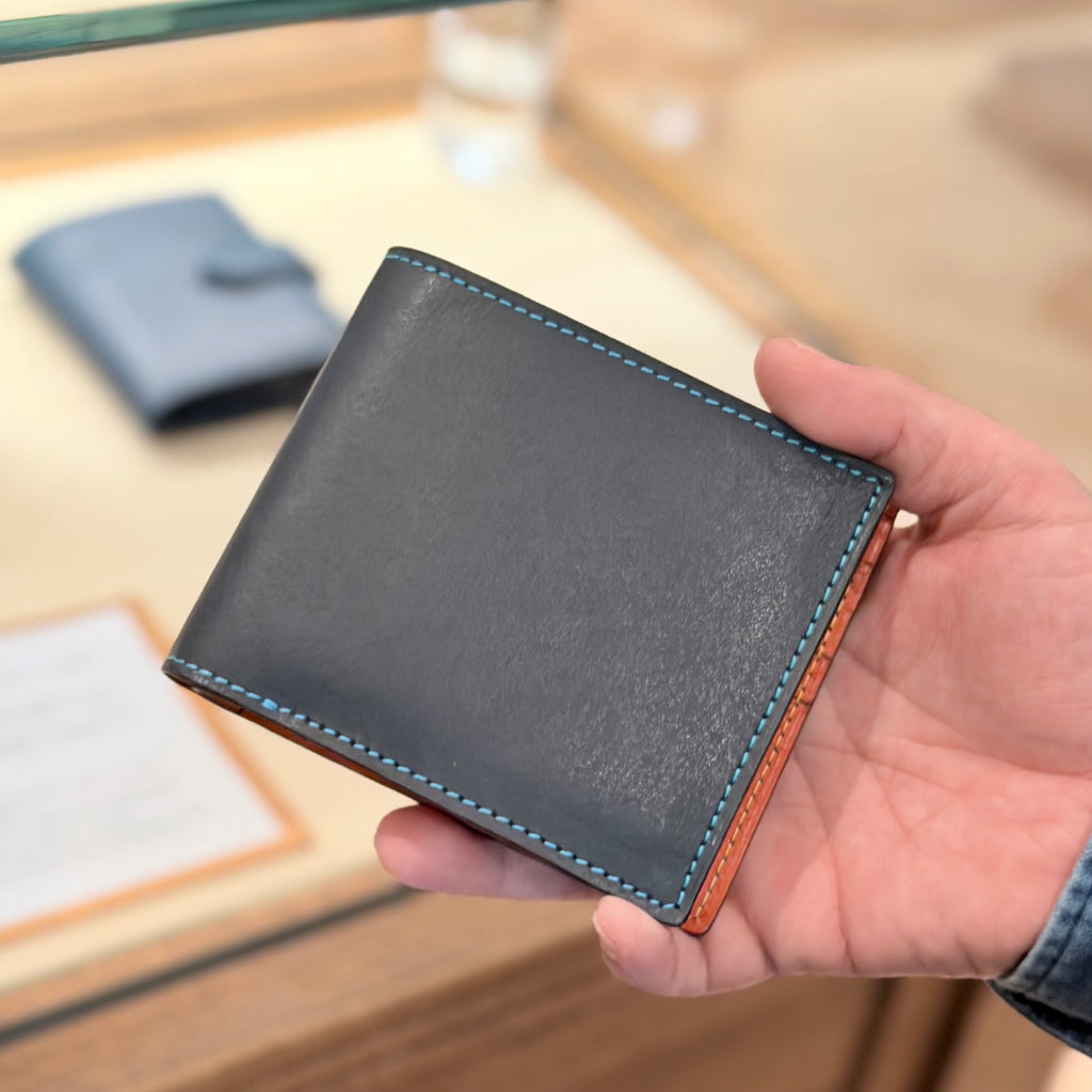 ⼀般的なお財布の⼩銭ポケットは、右側縦に付いているものが多いですが、ブルックリンでは右利きの⽅が使いやすい様、ポケットを左側に。より⼩銭の出し⼊れがスムーズに⾏えるようデザインしています。使い⼼地に徹底的にこだわることで⽀払いの所作を美しくする、ブルックリンミュージアムの⼆つ折り財布です。
