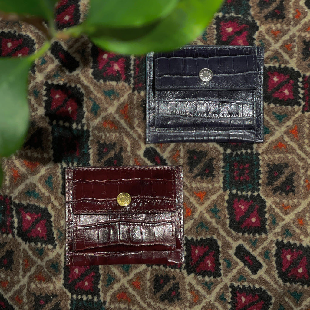 クールリッチ〈クロコパターンレザー〉で仕上げることにより、小さいながらも、リッチな雰囲気を醸し出す、オトナのミニウォレットです。