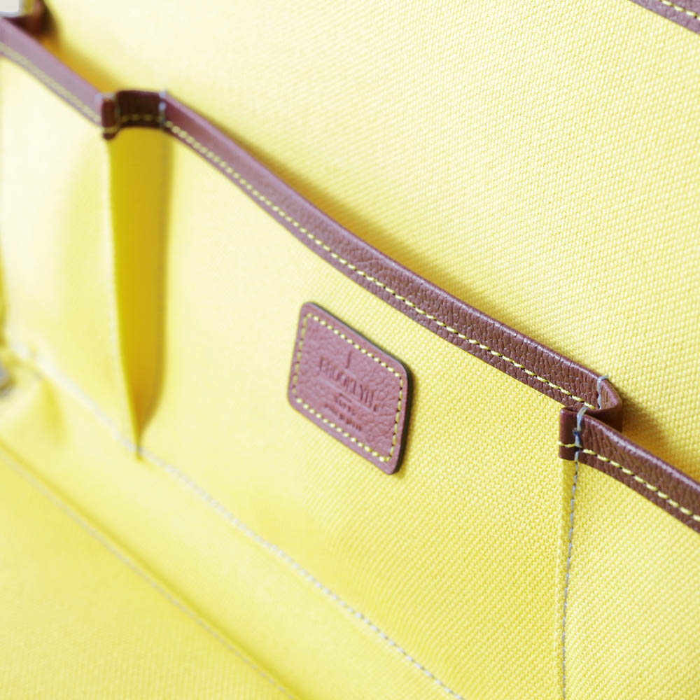 書類やガジェット類を入れて重みが出ても、厚地の帆布なら擦り切れる心配はありません。生地ならではの軽さと、帆布ならではの強さが相まって、このスマートさが実現しました。