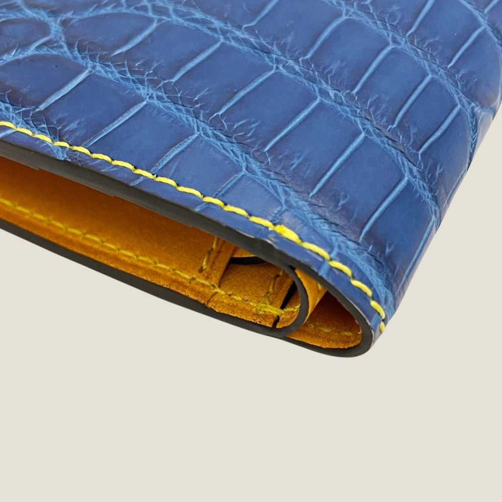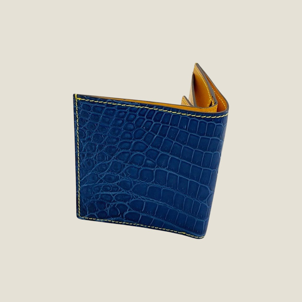 希少性の高いナイルクロコダイルを、日本独自の染色技術であり、無形文化財である徳島県にて本藍染めで染め上げ、吸い込まれそうなブルーに染め上がった〈藍染めクロコダイル〉のミニウォレット。