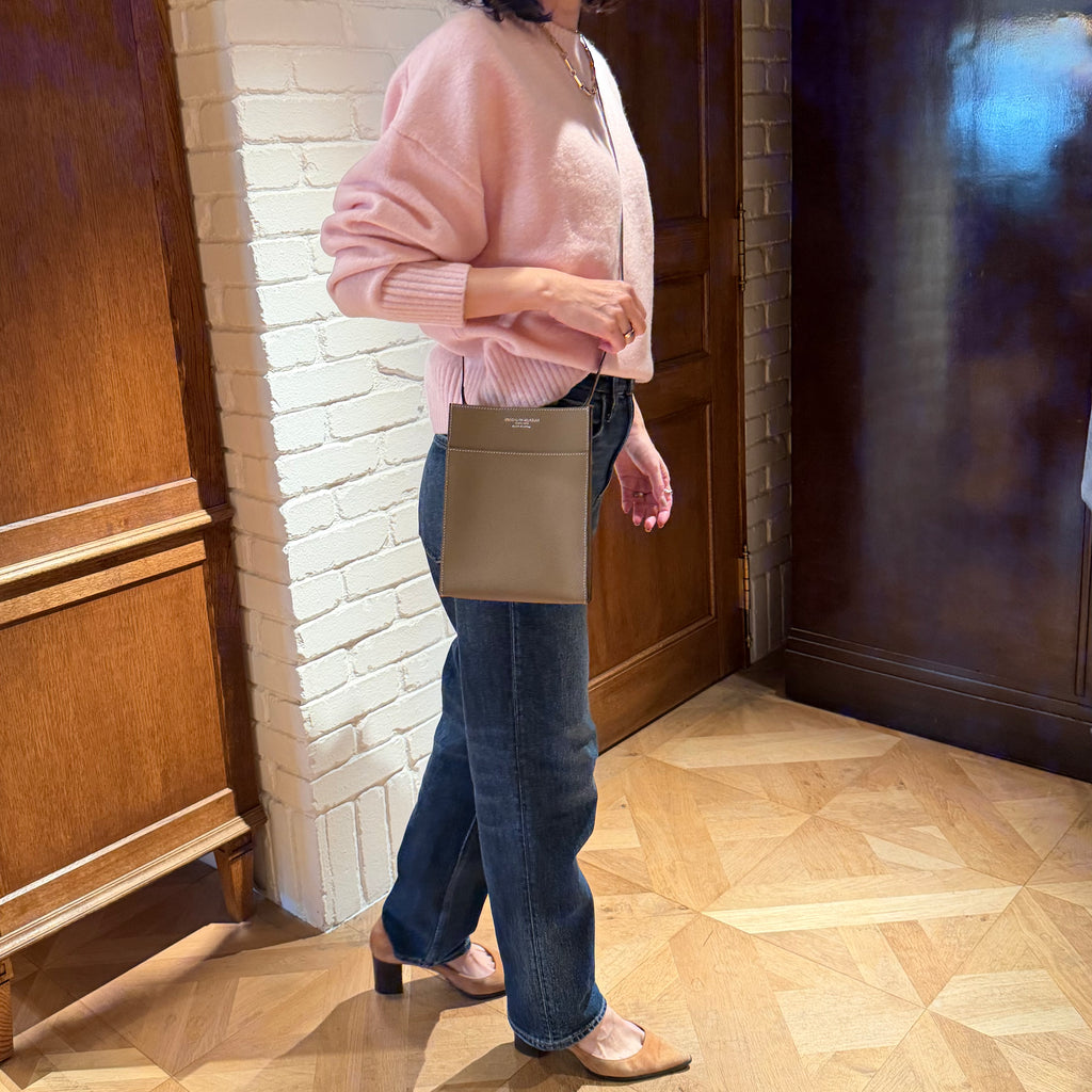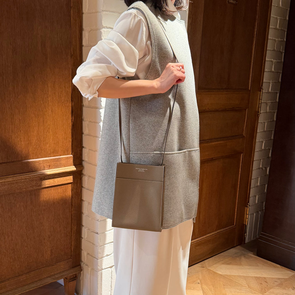サコッシュの大きさとバランスに一目惚れ、レザーの艶も素敵で、また軽さも良い。