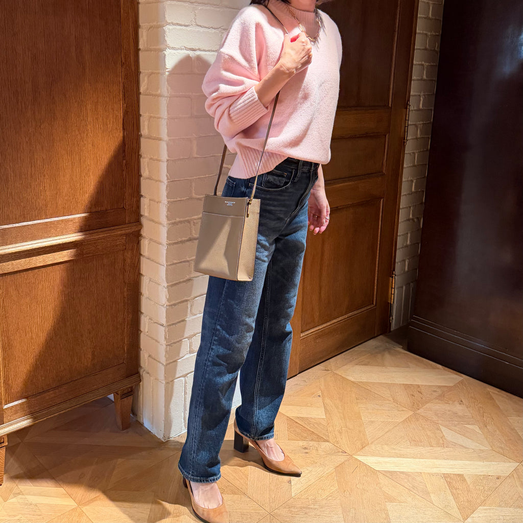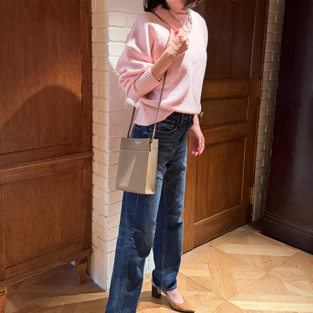 カジュアルな印象になりがちなサコッシュを、エレガントな雰囲気で持ち歩きたい。