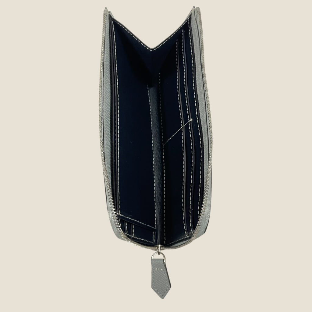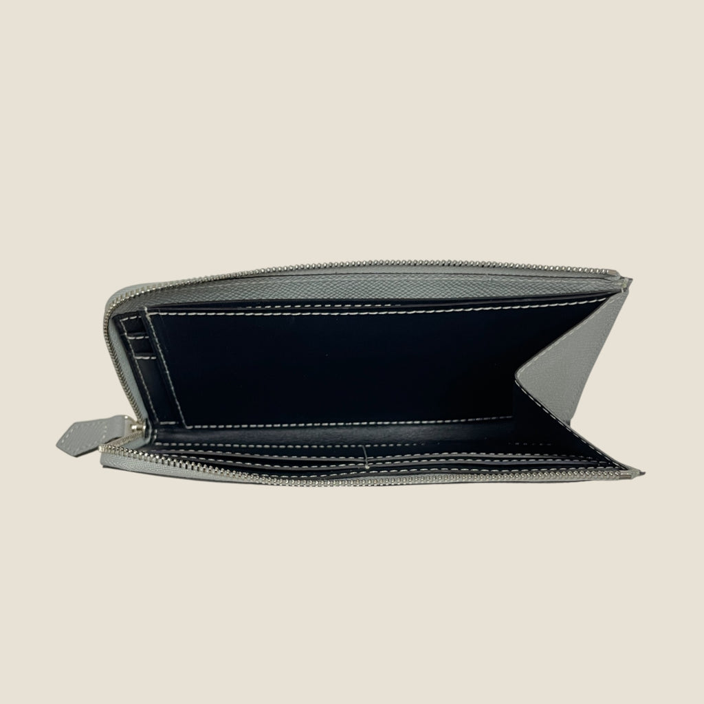 ジップタイプにも関わらず、ジャケットの内ポケットに入れても響かずスマートな印象。「厚みやサイズでジップタイプを懸念されていた方」「収納力は欲しいがスマートに持ちたい方」にマッチしています。表のフレンチカーフと、内側のオリジナルソフトレザーとのカラーコントラストが美しく、財布を使うことの喜びを与えてくれるアイテムへ仕上げています。