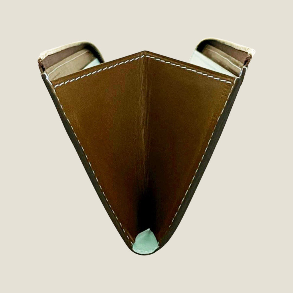 カード(4段×2)全8枚、左右カード部分裏ポケット×2、小銭入れ×1と、見た目以上の多様な収納スペースを設けながら、あえてカードポケットを少なく製作しています。常に整理整頓しながら「財布にモノを入れすぎない」ミニマルなスタイルを貫く、現代にフィットした財布です。