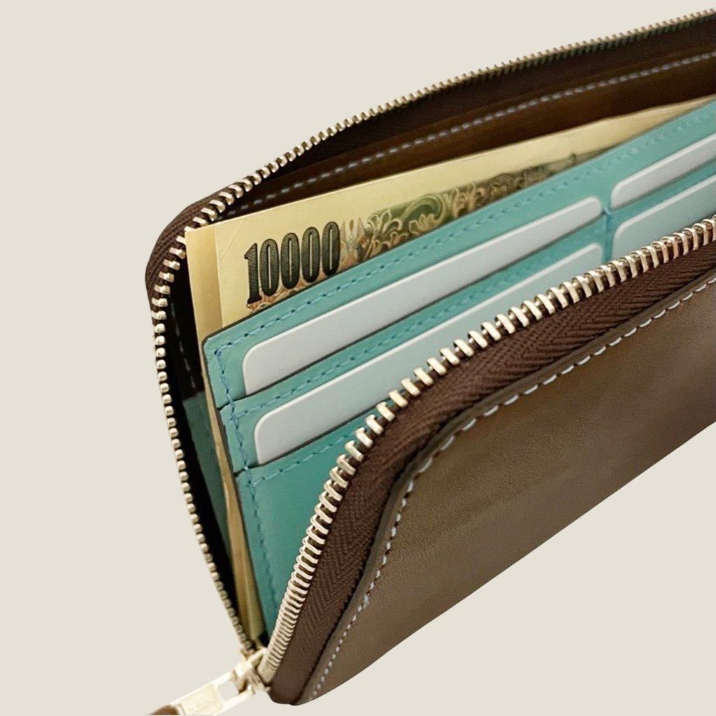ジップタイプにも関わらず、ジャケットの内ポケットに入れても響かずスマートな印象。「厚みやサイズでジップタイプを懸念されていた方」「収納力は欲しいがスマートに持ちたい方」にマッチしています。表のヤマトと、内側のオリジナルソフトレザーとのカラーコントラストが美しく、財布を使うことの喜びを与えてくれるアイテムへ仕上げています。
