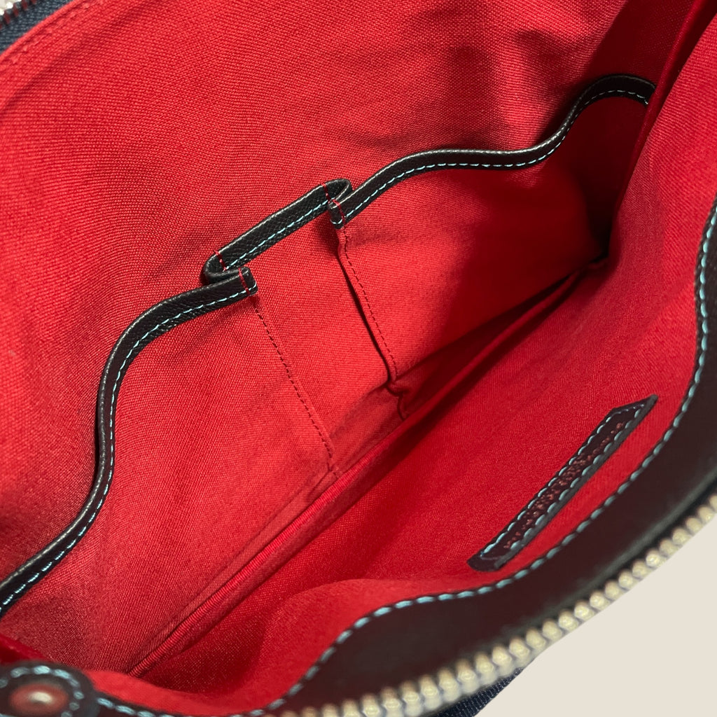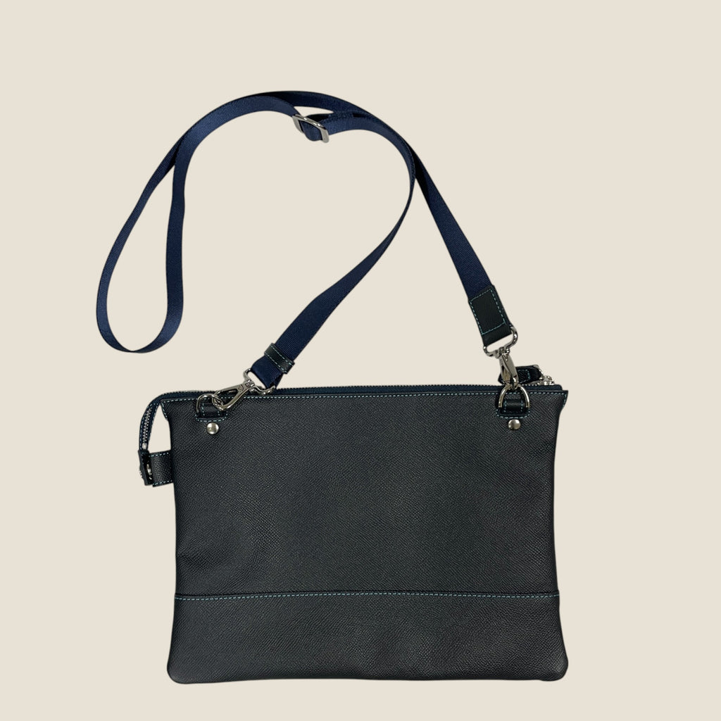 メインスペースには、iPad・財布・携帯・文庫本などを。ポケットスペースには、カードケース・キーケース・あると便利なペンを仕分けられるポケット付き。実用性と利便性を兼ね備え、すっきり仕分けOK。横型に大きく開くので、出し入れしやすさ抜群のショルダーバッグです。