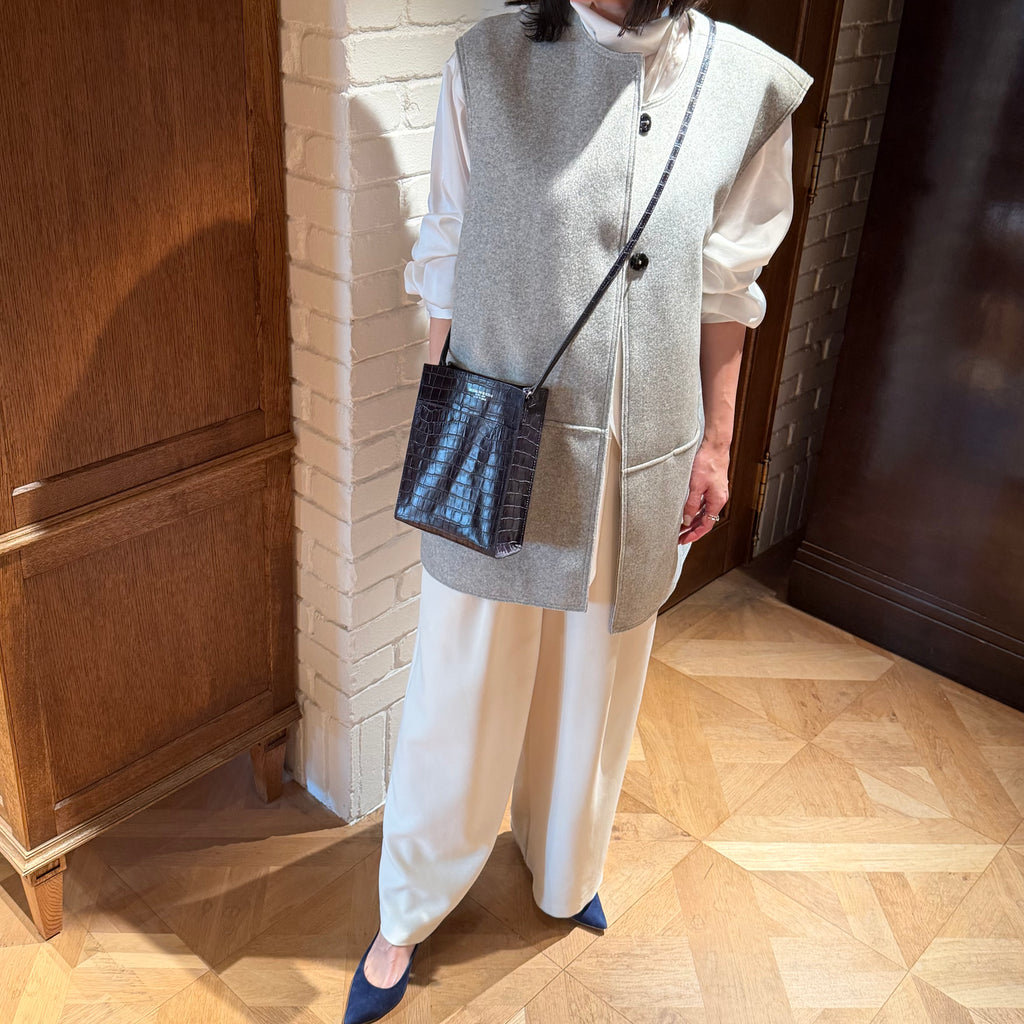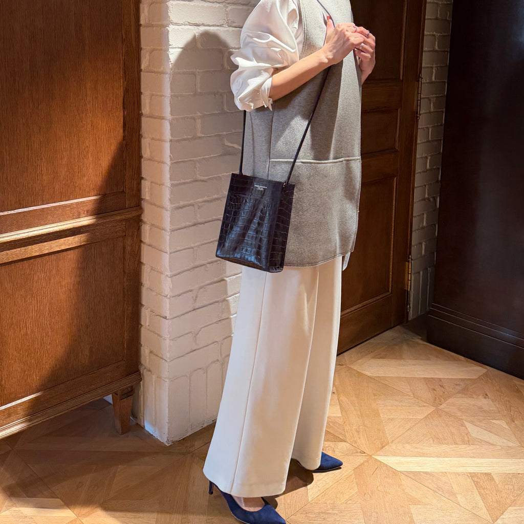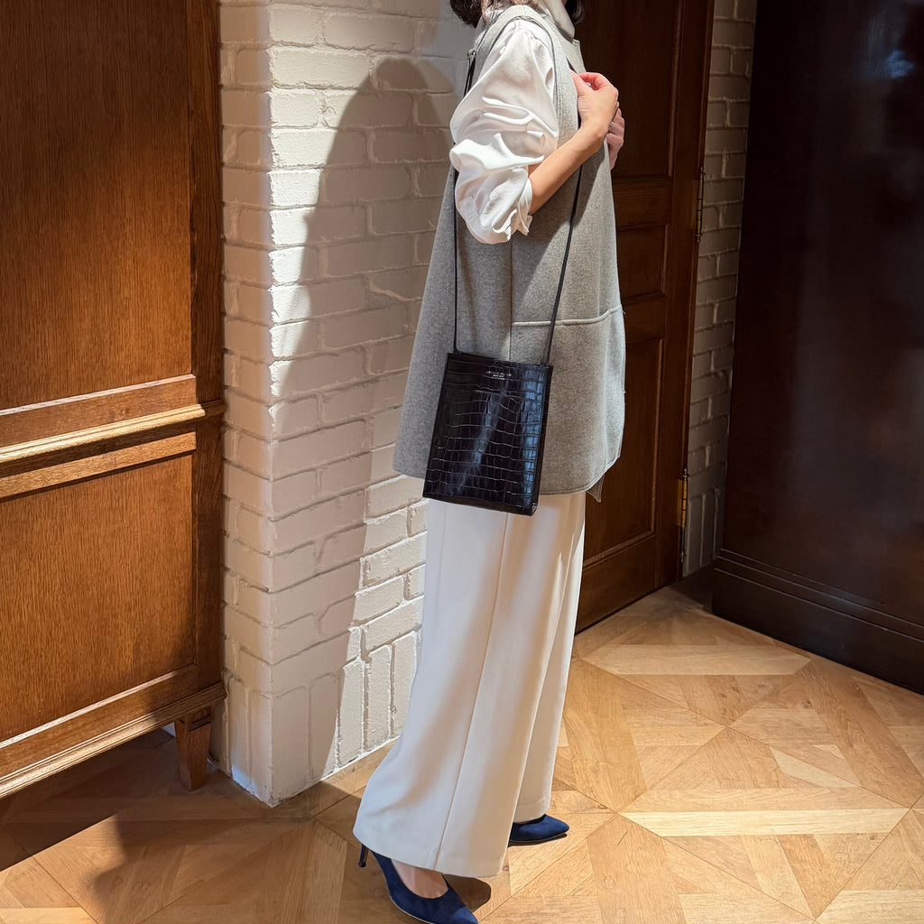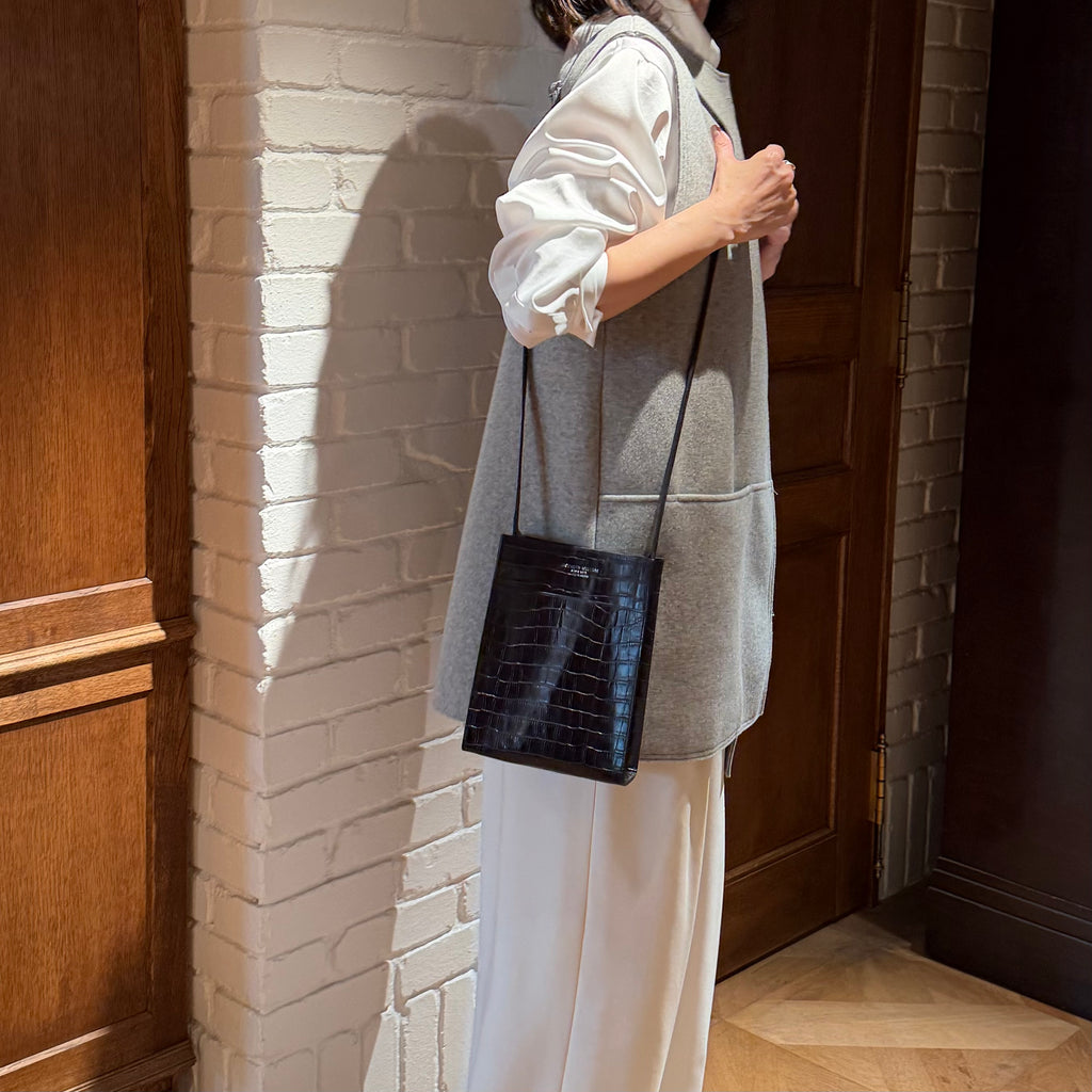 カジュアルな印象になりがちなサコッシュを、エレガントな雰囲気で持ち歩きたい。