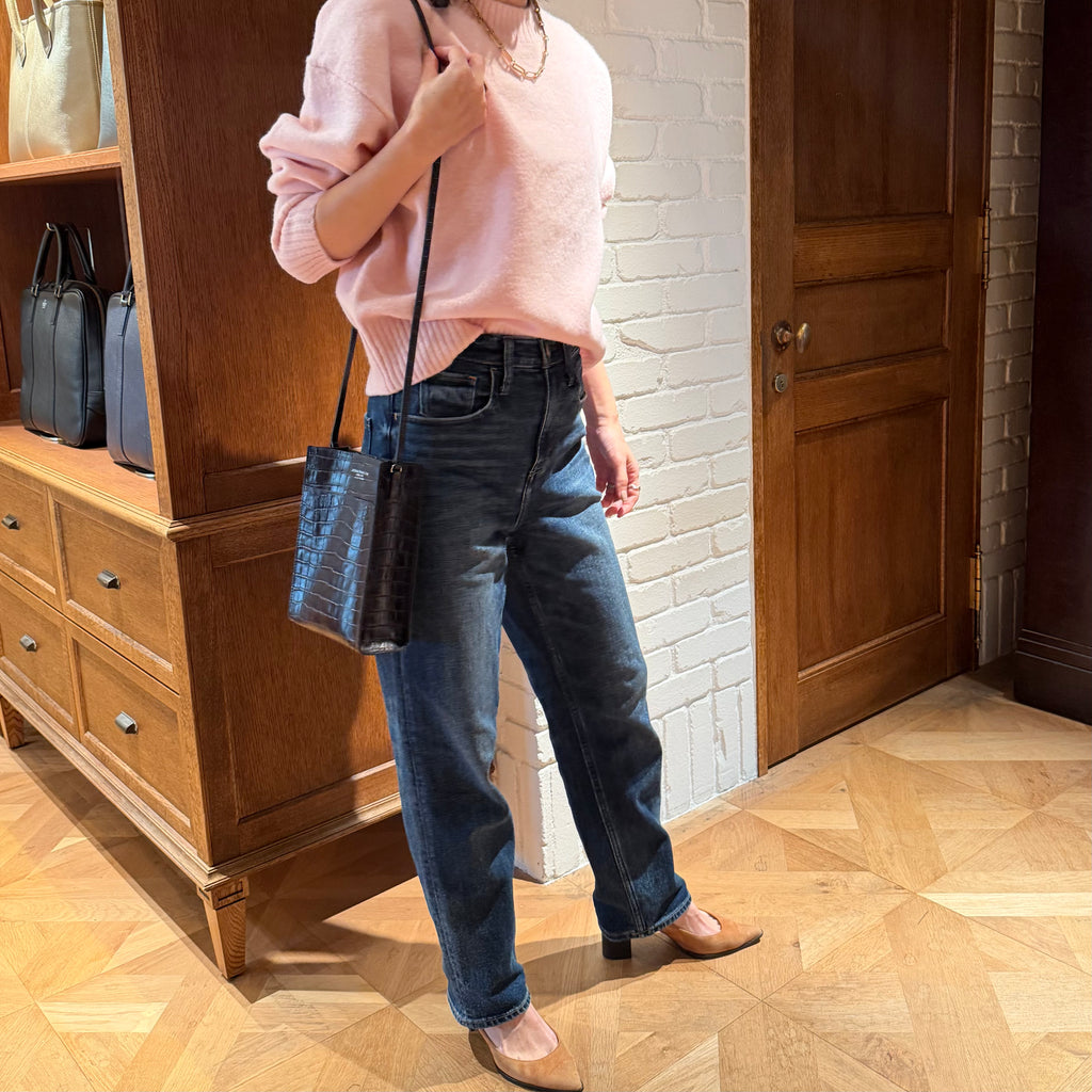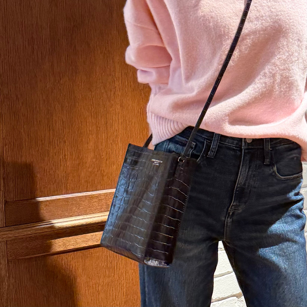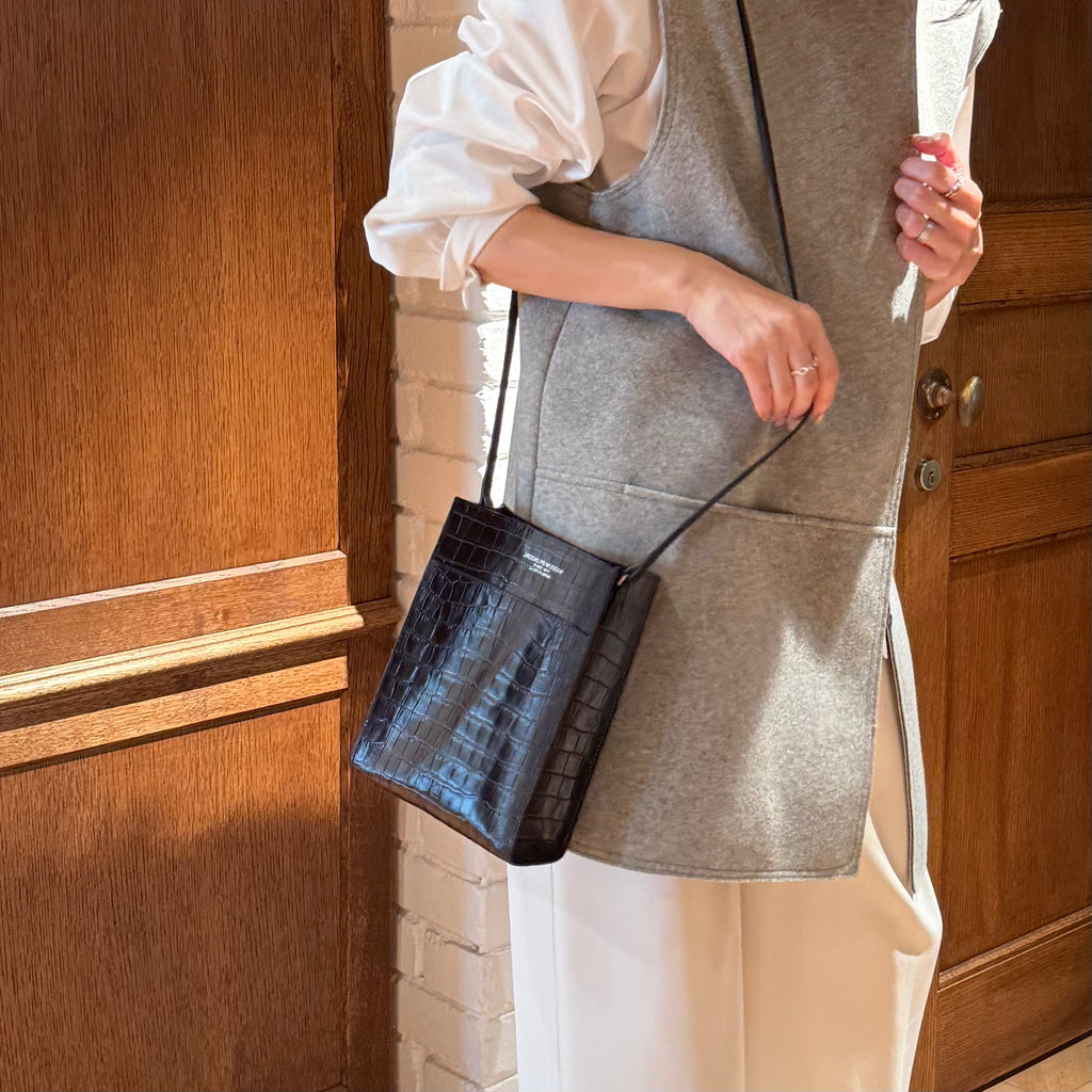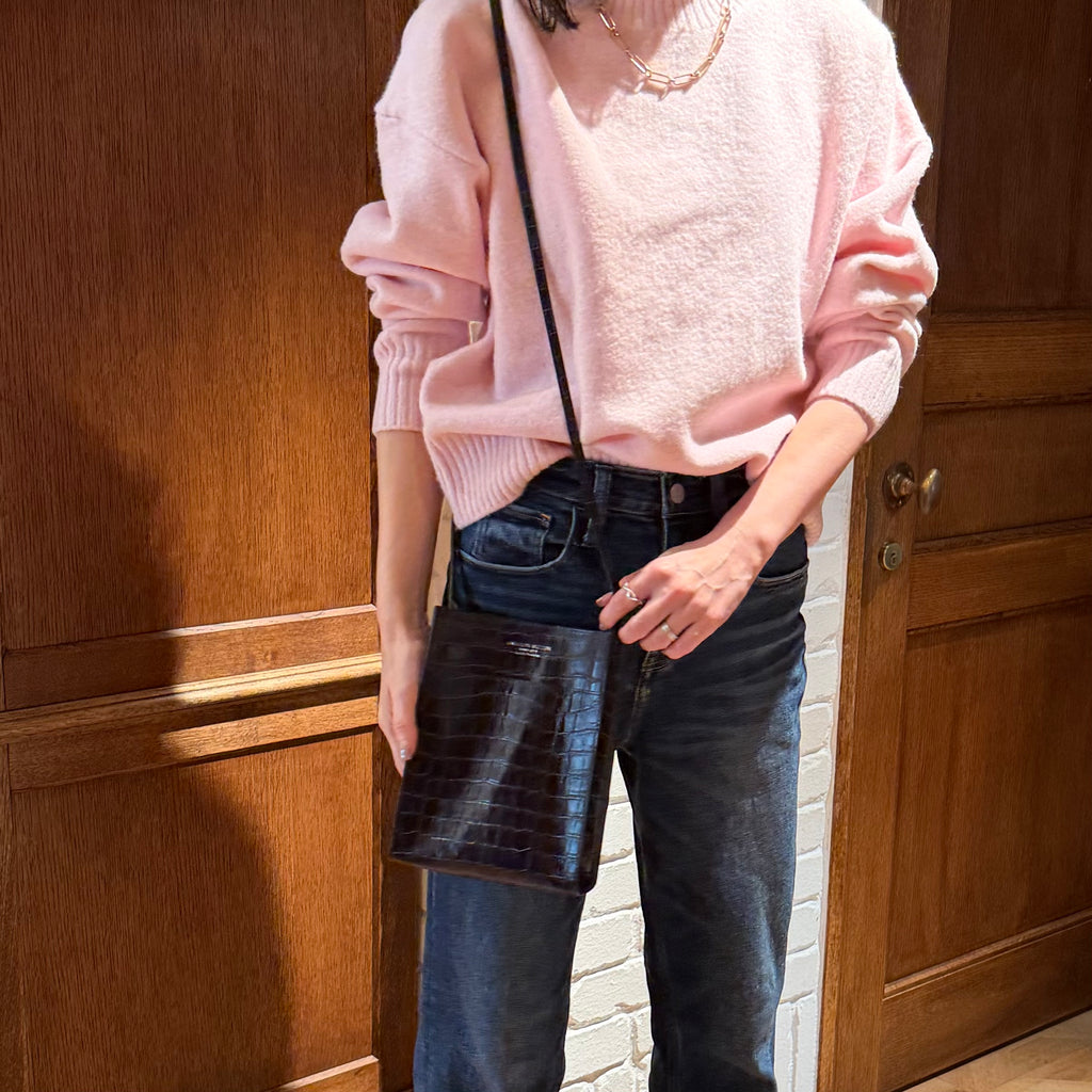 カジュアルな印象になりがちなサコッシュを、エレガントな雰囲気で持ち歩きたい。