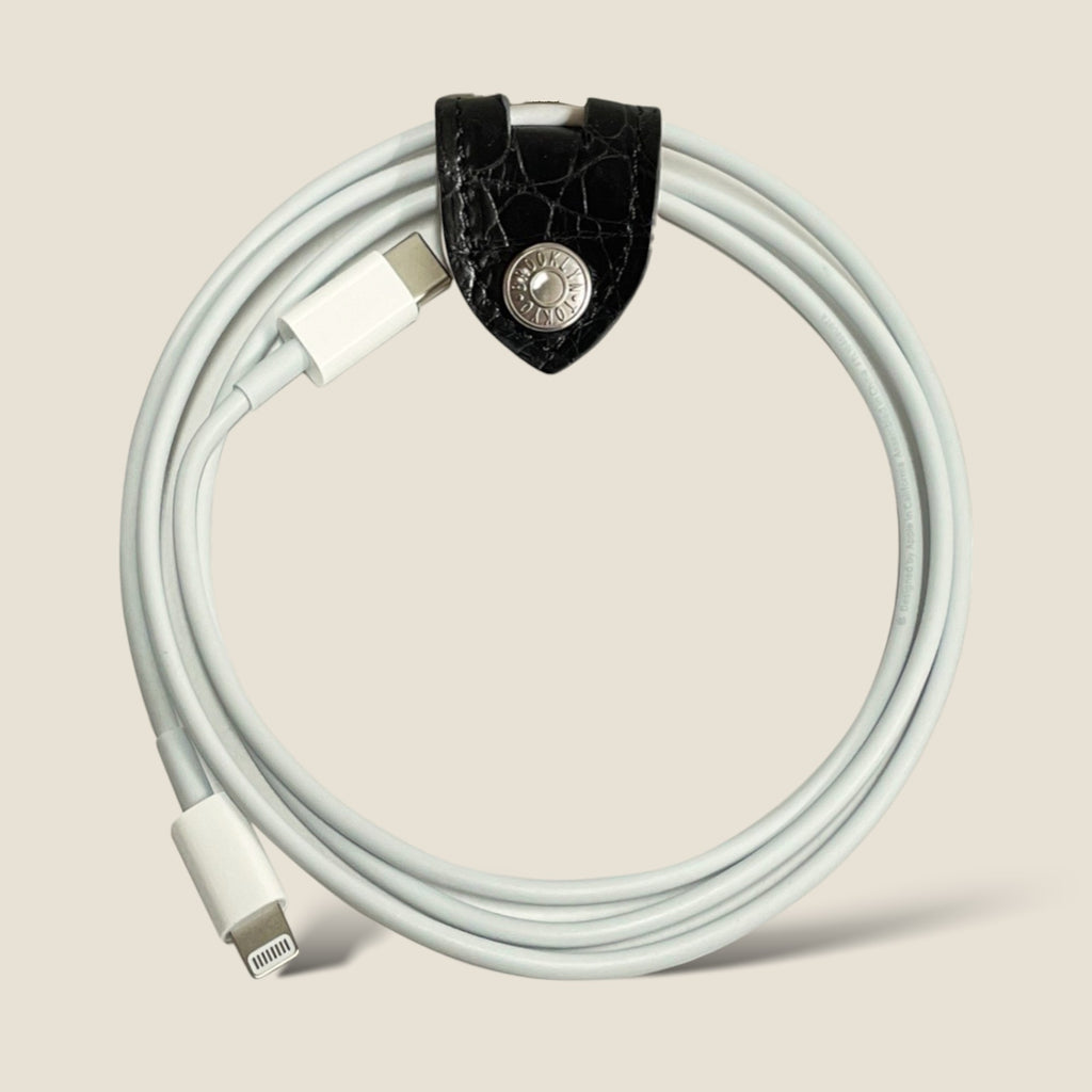 イヤホンや充電コードなどを差し込んで束ねてホックをパチンと留めるだけて簡単に収納出来ます。