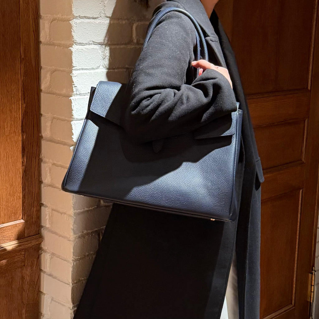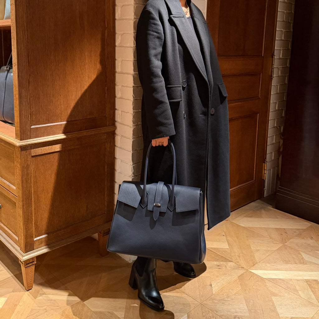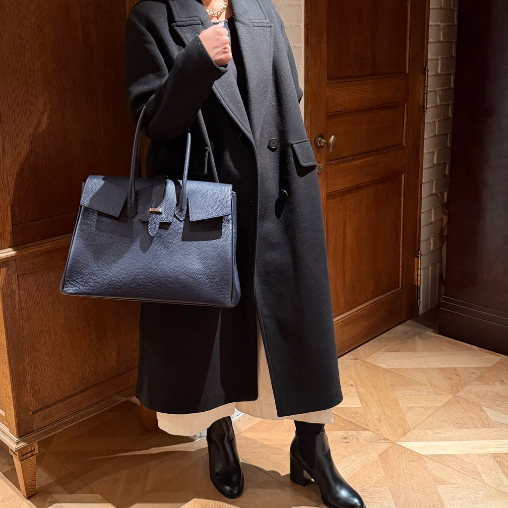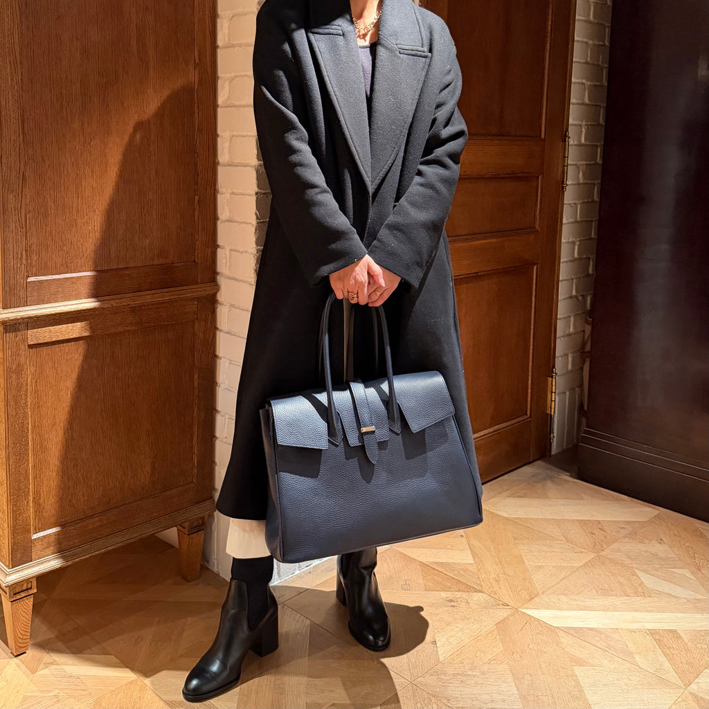 パソコンが入りつつも、アフターワークのディナータイムなどに、“ いかにもビジネスバッグ ” に映らないよう、“ 品あるサイズ感 ” に仕上げ、持つ人のスタイルを美しく魅せるよう、横に広がりすぎないサイズバランスにも配慮いたしました。