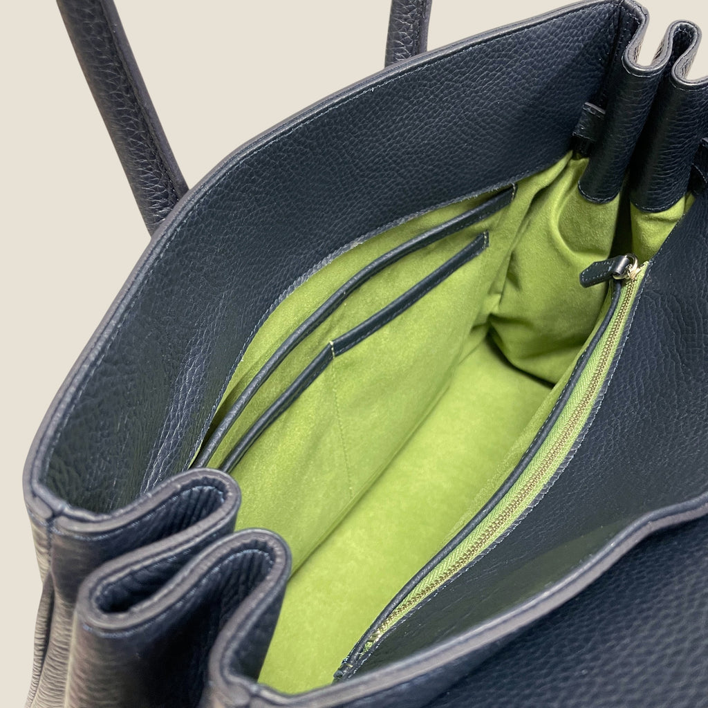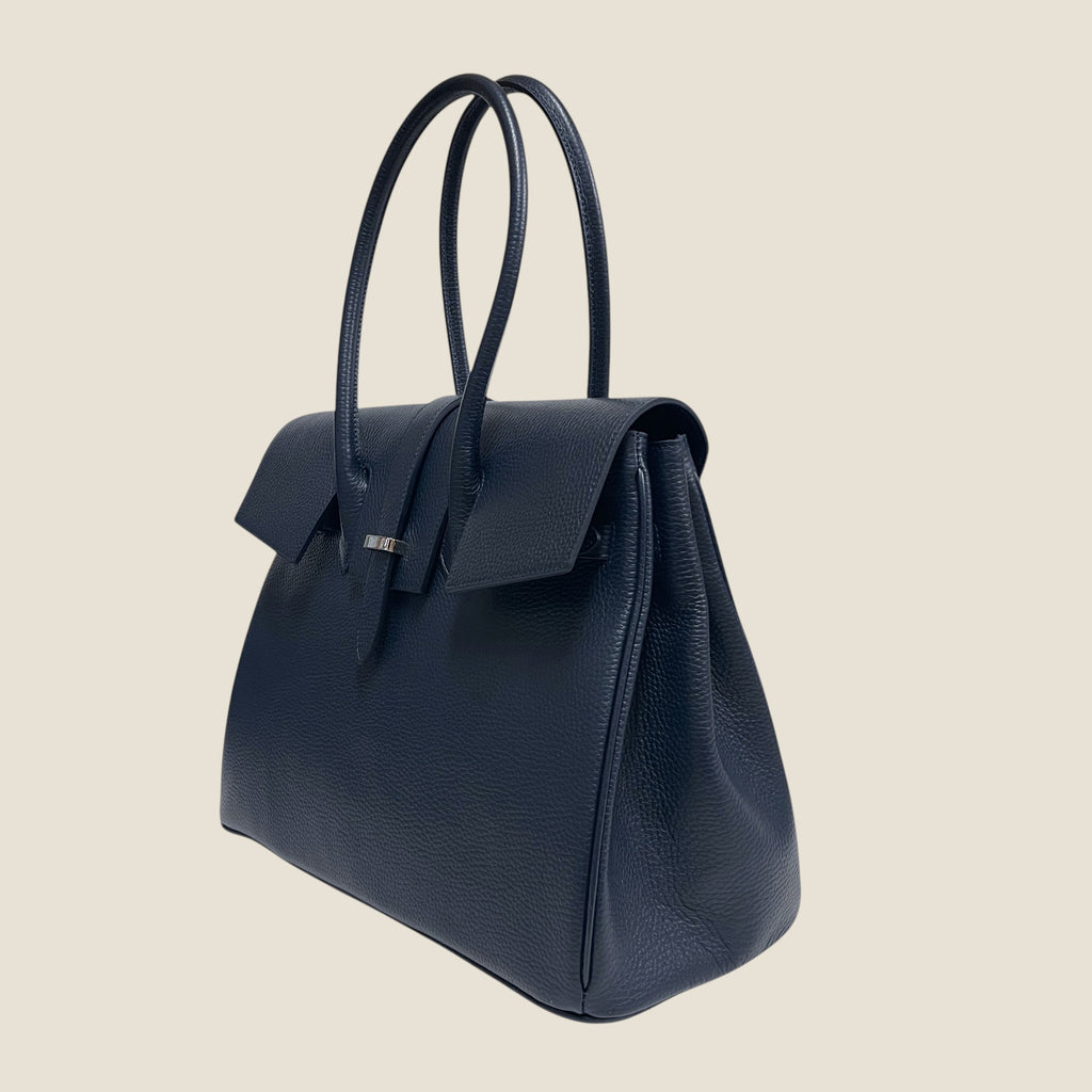 パソコンが入りつつも、アフターワークのディナータイムなどに、“ いかにもビジネスバッグ ” に映らないよう、“ 品あるサイズ感 ” に仕上げ、持つ人のスタイルを美しく魅せるよう、横に広がりすぎないサイズバランスにも配慮いたしました。