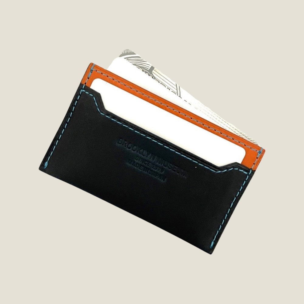 薄くコンパクトなカードケース。フロントポケットと、メインポケットがあり、全体で4-5枚のプラスチックカードを収納可能。
