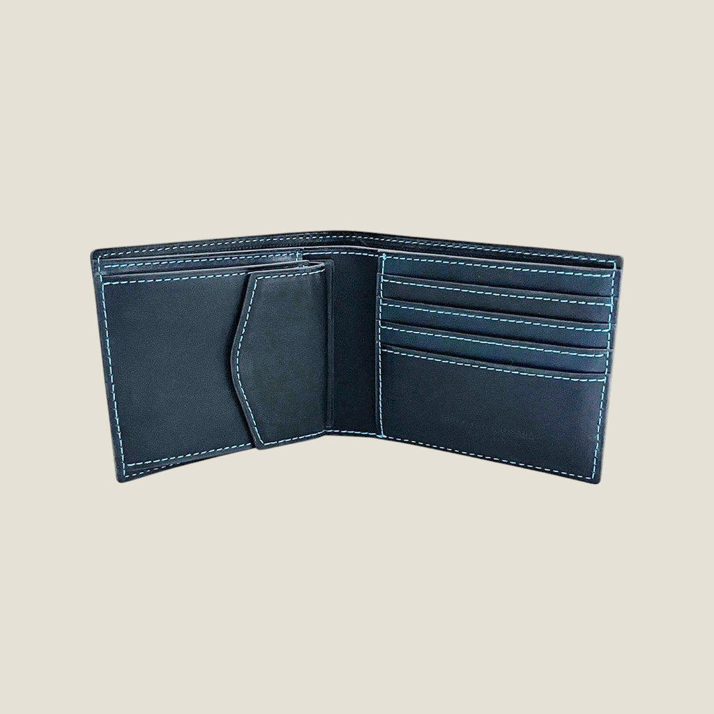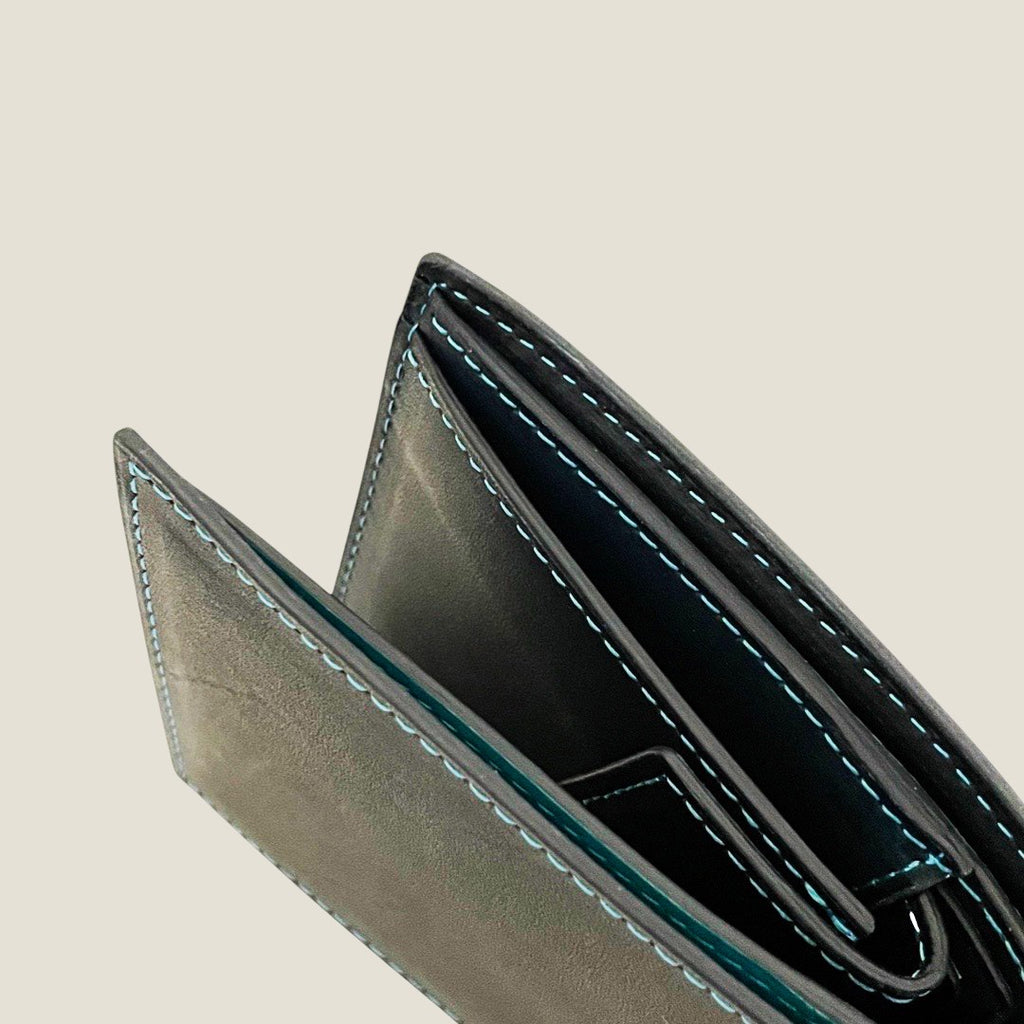 二つ折り財布だからといって、長財布の収納力と大きく変わることのないよう、小銭入れや小銭下ポケットの他、札入れ×2、カード段×4、カード段裏ポケット×1と、しっかり収納場所を設定。