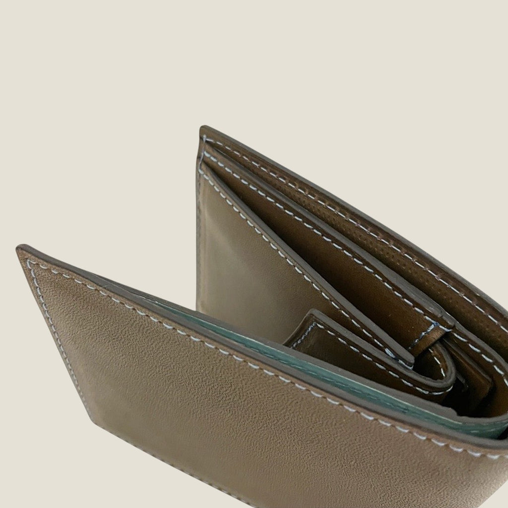 二つ折り財布だからといって、長財布の収納力と大きく変わることのないよう、小銭入れや小銭下ポケットの他、札入れ×2、カード段×4、カード段裏ポケット×1と、しっかり収納場所を設定。