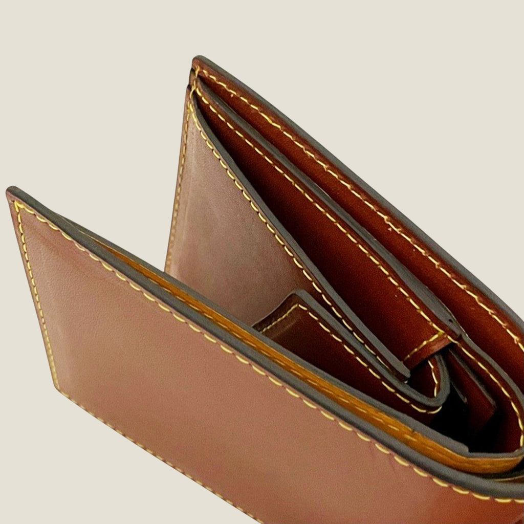 二つ折り財布だからといって、長財布の収納力と大きく変わることのないよう、小銭入れや小銭下ポケットの他、札入れ×2、カード段×4、カード段裏ポケット×1と、しっかり収納場所を設定。