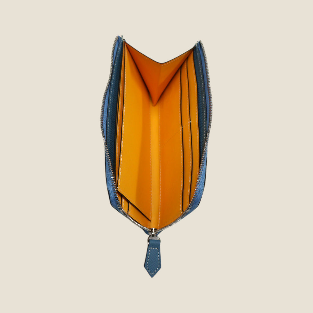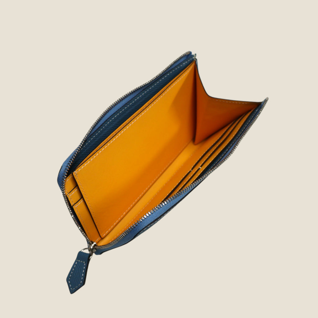 Despite the zip type, it does not sound even if you put it in the inner pocket of the jacket. It matches "Those who are worried about the zip type due to thickness and size" and "those who want storage capacity but want to have smart".The color contrast between the French calf on the table and the original soft leather inside is beautiful, making it an item that gives the joy of using a wallet.