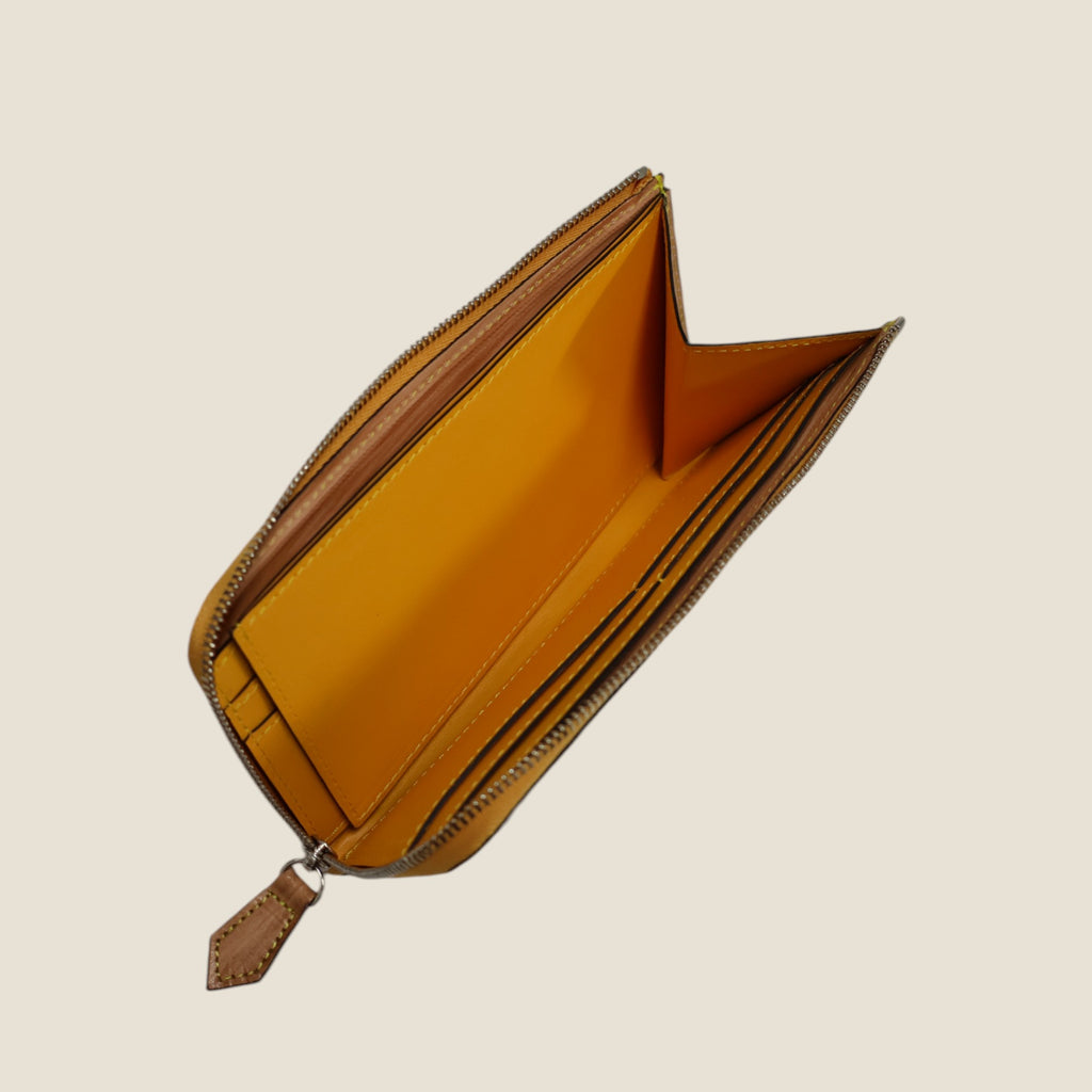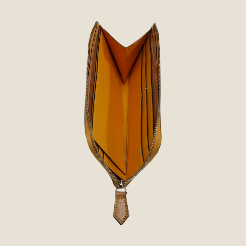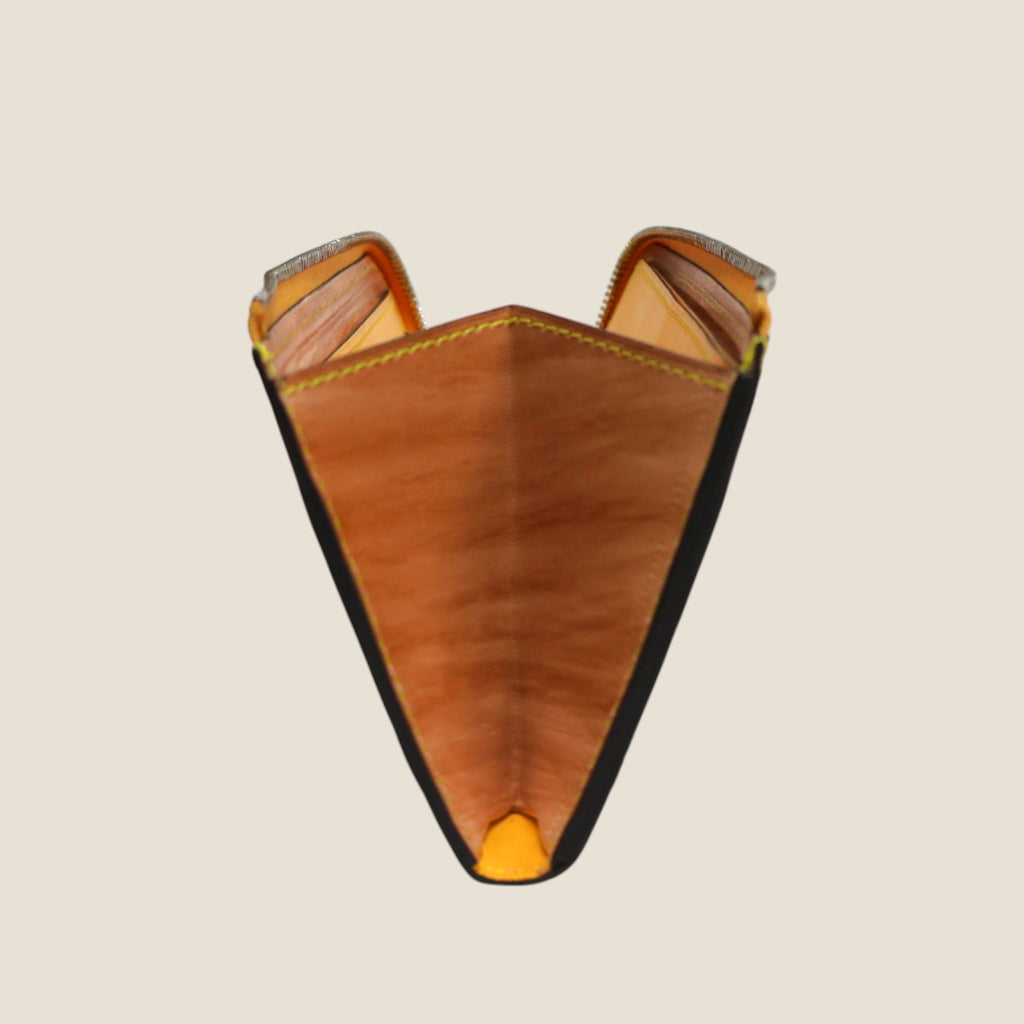 Despite the zip type, it does not sound even if you put it in the inner pocket of the jacket. It matches "Those who are worried about the zip type due to thickness and size" and "those who want storage capacity but want to have smart".The color contrast between the persimmon astringent dyed leather on the table and the inner soft leather inside is beautiful, and it is finished in an item that gives the joy of using a wallet.