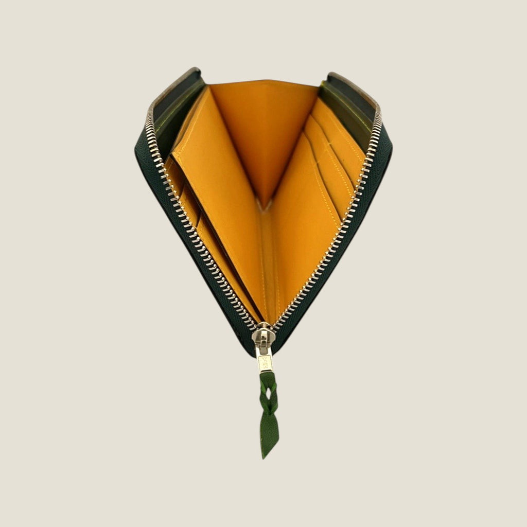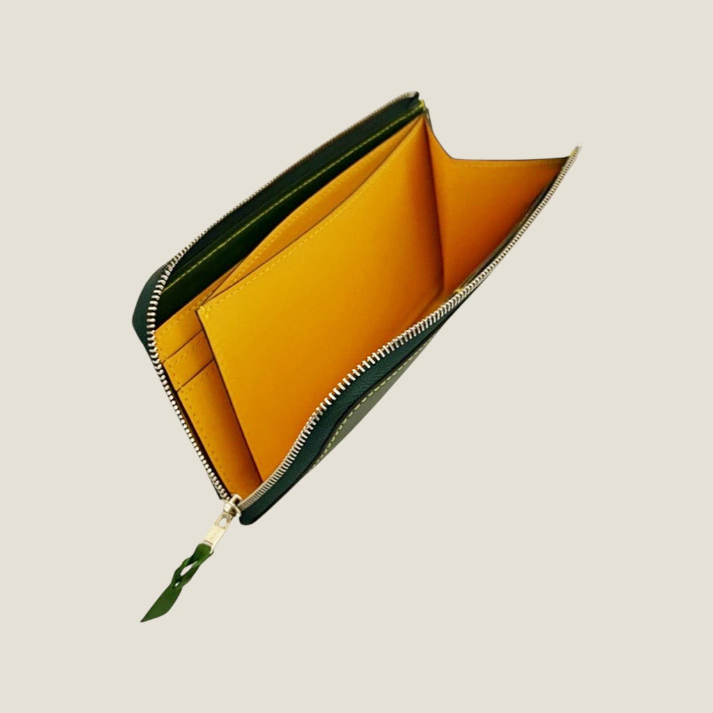 Despite the zip type, it does not sound even if you put it in the inner pocket of the jacket. It matches "Those who are worried about the zip type due to thickness and size" and "those who want storage capacity but want to have smart".The color contrast between the Yamato on the table and the inner soft leather inside is beautiful, making it an item that gives the joy of using a wallet.